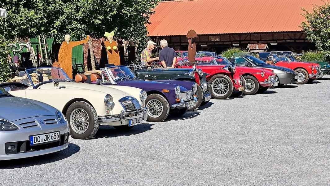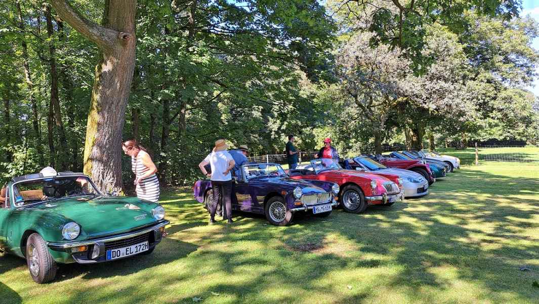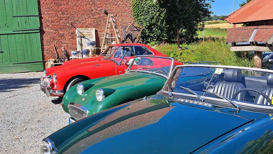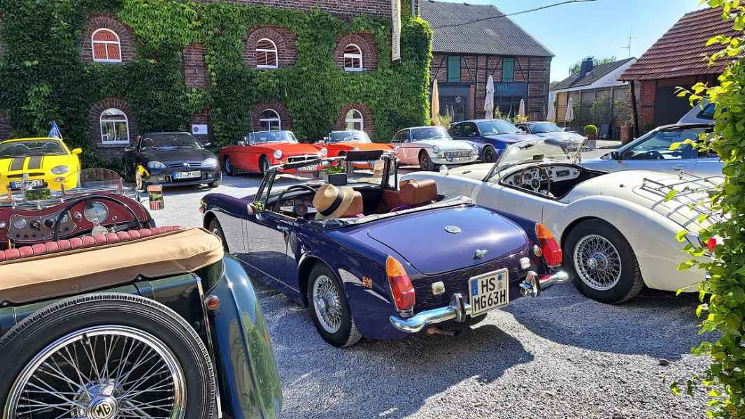 Einige hatten sich lange nicht gesehen und tauschten schnell die wichtigsten Neuigkeiten aus. „Neue“ MG-Besitzer waren ebenfalls dabei und beantworteten gerne Fragen zu sich und Ihren Fahrzeugen: Achim hatte die F/TF-Fahrer der Umgebung informiert.