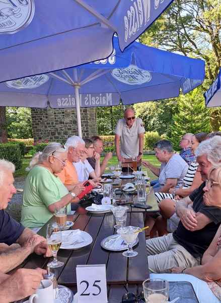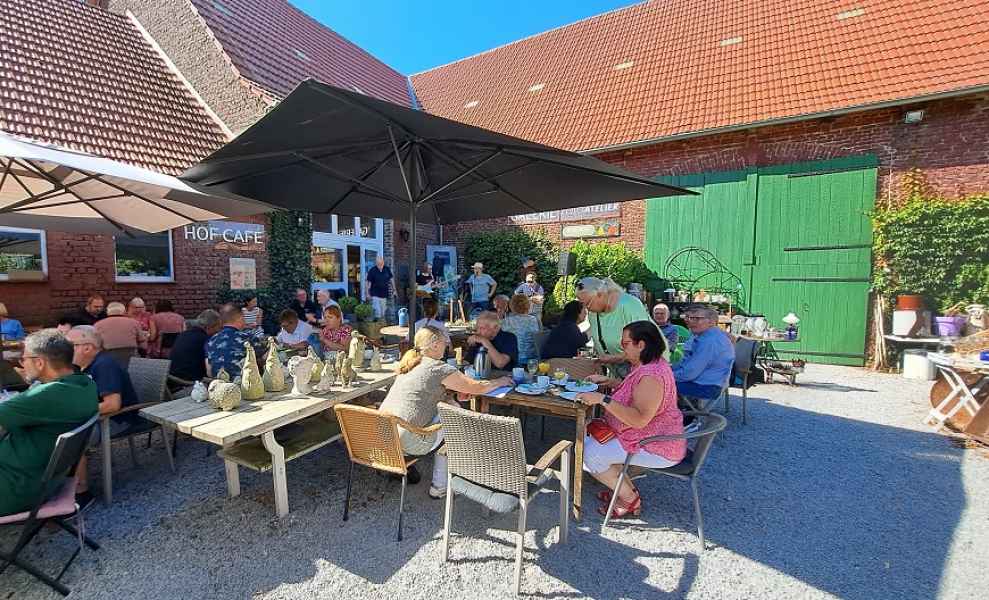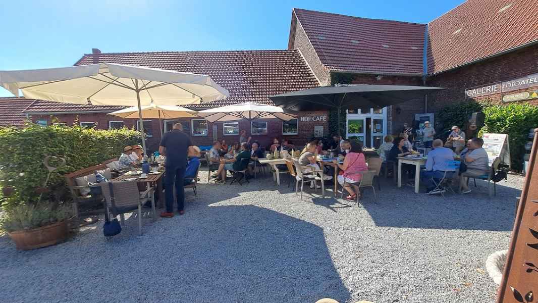 Achim und Bernadette Roll haben im Hofcafe Lieblingsplatz in Frömmern zum 17. Mal  MG „Brunch and Blues“ organisiert und es kamen viele. Der Andrang war so groß, dass Achim schließlich von ursprünglich 40 auf 50 Teilnehmende erhöhte. In dem Cafe wäre es eng geworden, aber draußen auf dem Hof fanden alle ausreichend Platz.