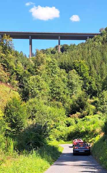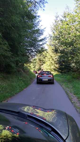 Um kurz nach 13.00 Uhr machten sich einige auf den Heimweg, der größte Teil aber startete um halb zwei mit den Veranstaltern zu einer kleinen Ausfahrt. Durch Wiesen und Wälder, bergauf, bergab mit engen Kurven aber auch wunderschönen Aussichten führte uns Achim bis zum Café am Kaiser-Friedrich-Turm.