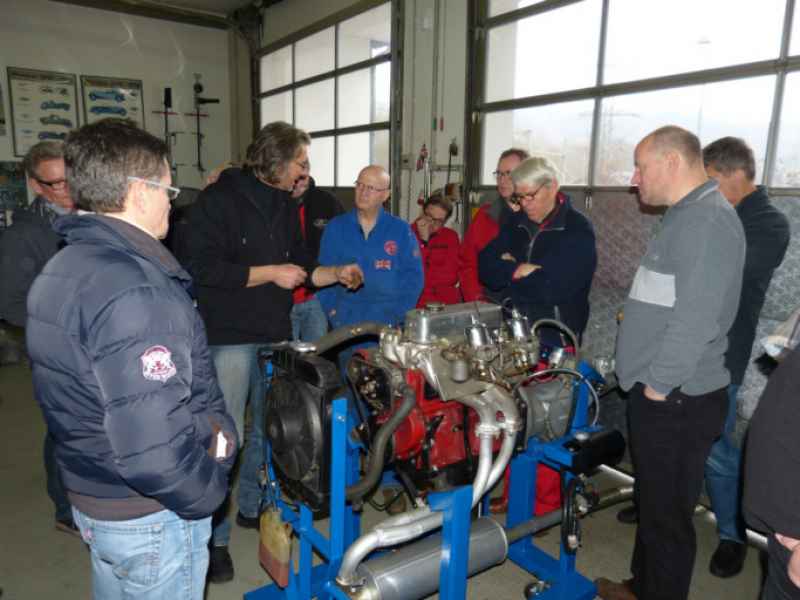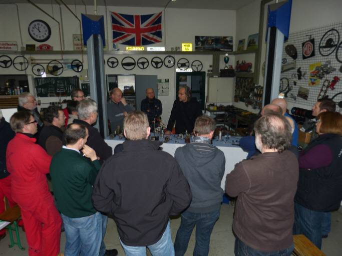 Am Samstag, dem 23.2.2013, fand in Overath in der Nähe von Köln ein Workshop des MGDC statt. Was ca. 22 Teilnehmer erlebten, war weit mehr als die angekündigte „Pannenhilfe“ in einer „Werkstatt“. Hier war mit dem Chef und Referenten Michael Böttcher ein kenntnisreicher Enthusiast für altes englisches Blech zu erleben, der sehr gut verständlich und nachvollziehbar die Funktionsweise von Motor, Elektrik und Benzinversorgung erklärte und an den aufgebauten Teilen demonstrierte.