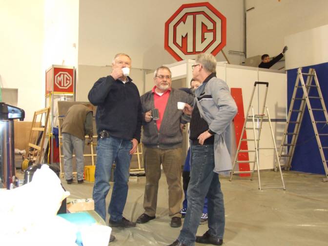 Am Mittwoch werden die Fahrzeuge auf den Stand gebracht und letzte Feinheiten justiert. Dann kann es am Donnerstag los gehen. Die Standbesetzungen an den einzelnen Tagen könnt Ihr in der letzten MG Drivers Info nachlesen und so gezielt Treffen vereinbaren. Im Namen aller Standdienstler möchte ich die Clubmitglieder und auch (Noch)-Nichtmitglieder herzlich auf eine kleine Stärkung am Clubstand einladen. Das eine oder andere Benzingespräch ergibt sich dann von selbst. Insbesondere würden wir uns natürlich auch über tatkräftige (junge) Unterstützung im Messeteam freuen. Meldet Euch einfach beim Standpersonal, Ihr seid herzlich willkommen.