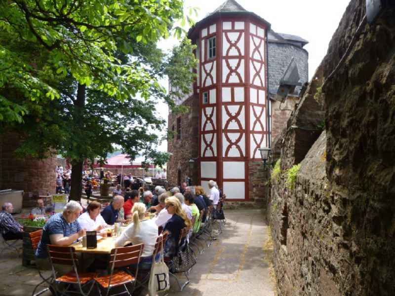 Nach dem Frühstück am Sonntag führte die Ausfahrt durch das nördliche Taubertal, zunächst zu einer Erlebnisweinführung auf dem Weingut Benz in Beckstein und anschließend nach Wertheim, wo im Burginnenhof zu live dargebotener Jazzmusik das Abschiedsmahl eingenommen wurde.