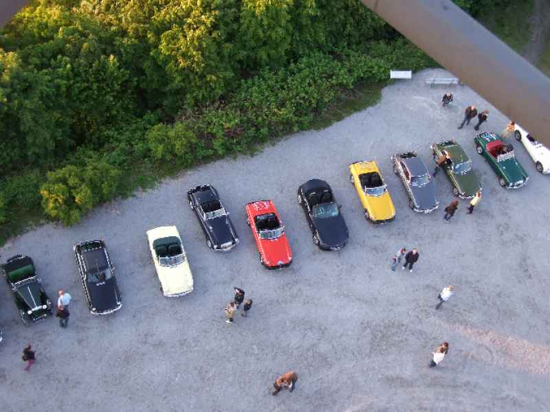 Vom Veranstaltungshotel Schloß Westerholt ging es mit den MGs nach Bottrop (tiefstes Ruhrgebiet) auf die Halde Bottrop mit dem Tetraeder. Ulrich war gut vorbereitet und hat uns im Konvoi bis auf den Tetraeder geführt. Da war ein großes Hallo bei den dortigen Besuchern angesagt. In diesem Moment wurde für die anderen Besucher der Tetraeder und die Aktion Schachtzeichen (gelbe Ballons) zur Nebensache. Wir wurden umringt von vielen Leuten. Die Aussicht war bei super Wetter gigantisch. Dieses erste Kulturerlebnis war ein perfekter Einstieg auf die morgige Tour zur Kulturhauptstadt 2010.