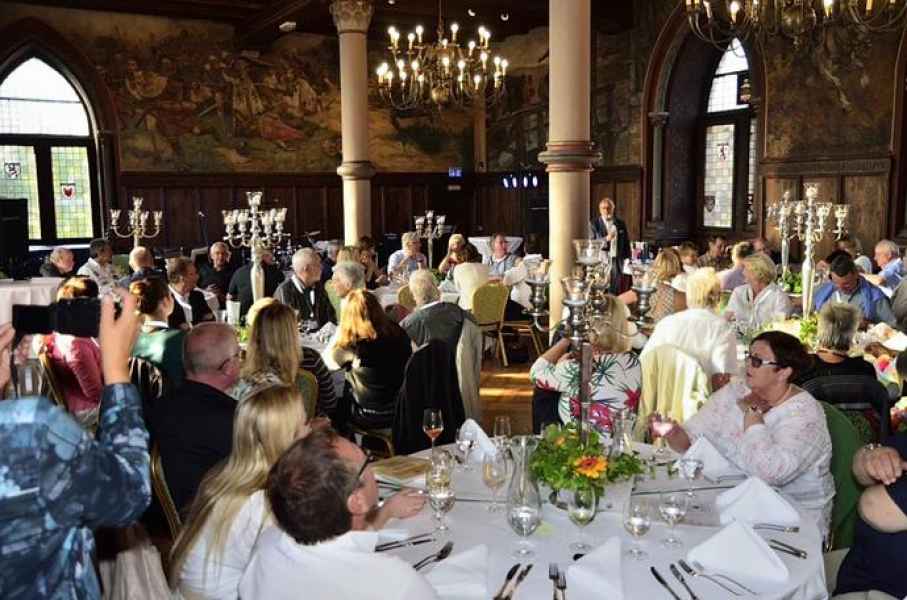 Wir machten wie viele andere danach noch Station an einem ehemaligen Kotten an der Wupper, der, idyllisch gelegen, heute als Museum eingerichtet ist. Der Abend mit Tombola und Siegerehrung begann zunächst mit einem Sektempfang außerhalb des Schlosses, bevor wir uns dann ins Innere des fürstlich dekorierten Rittersaals begaben, wo ebenso fürstlich diniert wurde. Nach Tombola und Siegerehrung spielten die New Avengers auf, eine Fünfmannband, die Rock aus den 60ern und frühen 70ern zum Besten gab. Wann hat es das zuletzt bei einem MGDC Meeting gegeben, eine volle Tanzfläche bis nach Mitternacht.