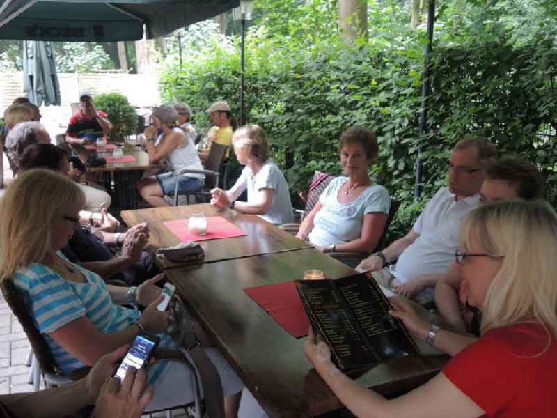 Am Abend saßen alle in gemütlicher Runde bei eisgekühlten Getränken - der Wettergott meinte es immer noch sehr gut mit uns - und genossen das Grillbuffet.