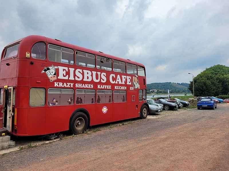 Bei trockenem Wetter und nach der Fahrt durch Meißen steuerten wir zur Belohnung das Eisbus Café an und gönnten uns einen mehr oder weniger großen Becher.