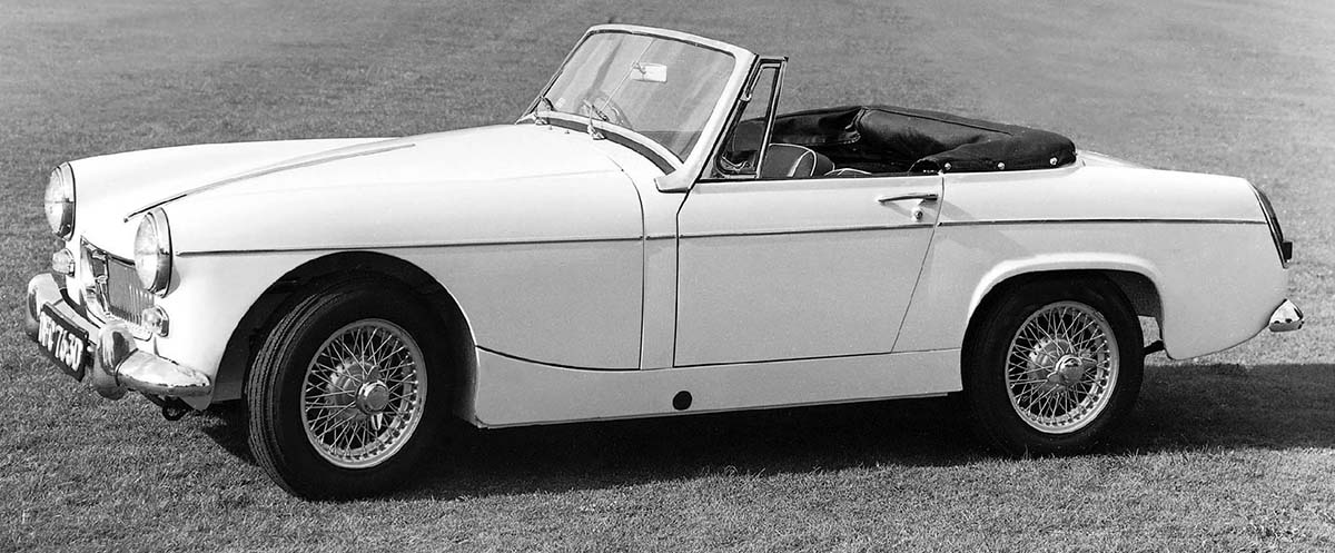 Klon des Austin-Healey Sprite Mk 2 mit MG Logo. Zunächst mit Steckscheiben und A-Serie-Motor mit 948 ccm. In sechs Serien bis 1979 gebaut. Ab 1974 wegen verschärfter Sicherheitsbestimmungen in USA mit Gummi-Stoßstangen und hochgesetzter Karosserie und aus Rationalisierungsgründen mit Motor des Triumph Spitfire.