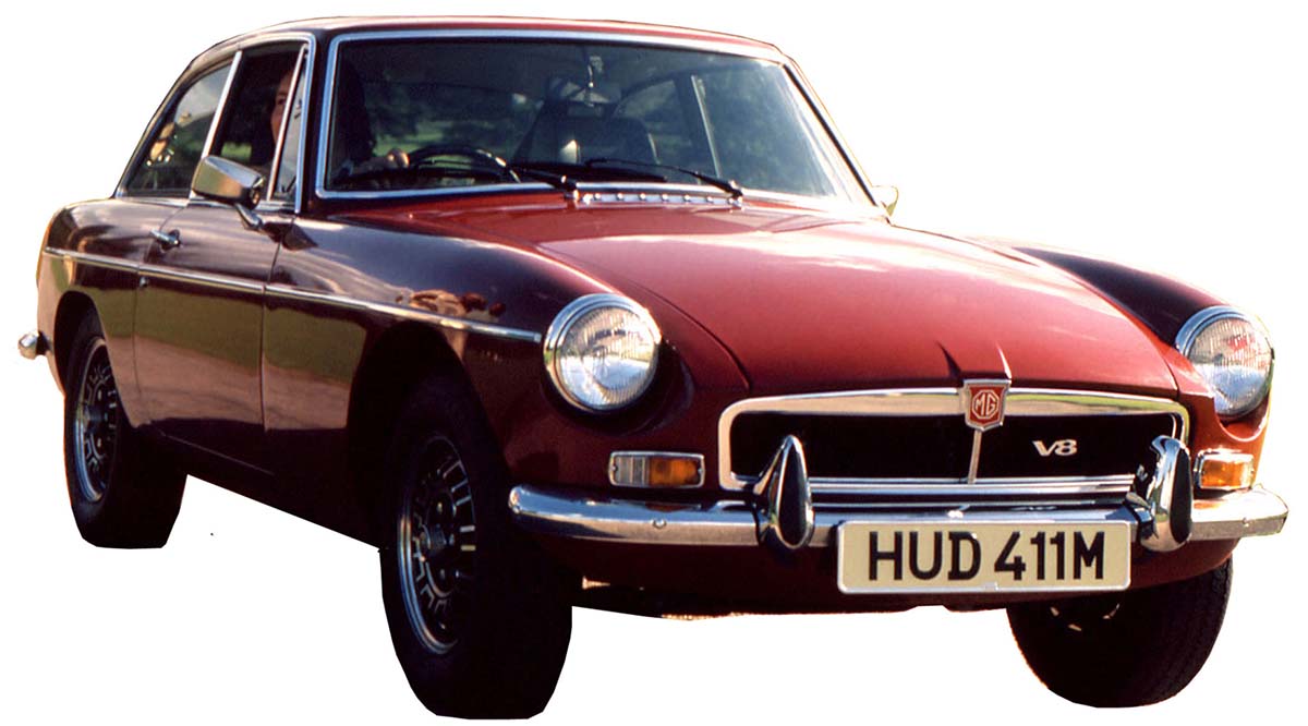 Nachfolger des MGA mit selbsttragender Karosserie und auf 1.789 ccm gebrachtem B-Serie-Aggregat. Ab 1965 auch als gelungenes MGB GT Coupé mit von Pininfarina designter Fastback-Karosserie. In drei Serien bis 1980 gebaut. Ab 1974 wegen verschärfter Sicherheitsvorschriften in USA mit Gummistoßstangen und hochgesetzter Karosserie. Zahlreiche erfolgreiche Einsätze im Renn- und Rallyesport.