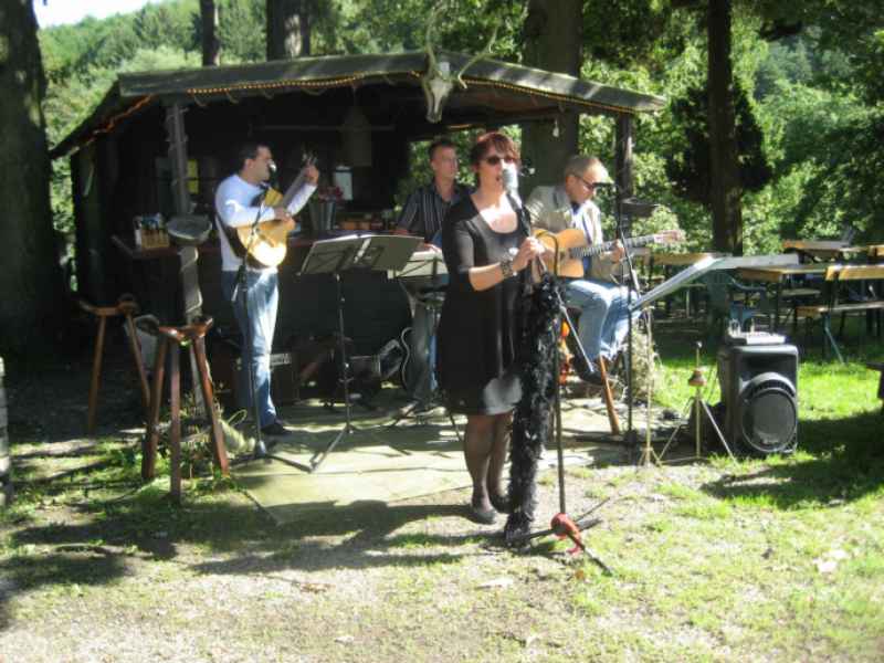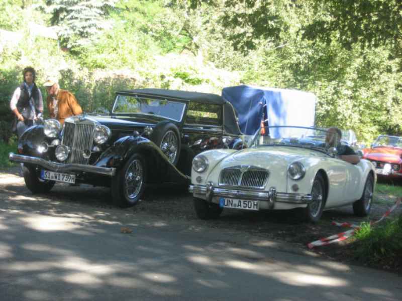 Dort erwartete sie herrliches Biergartenwetter, reichlich Buffet und wie immer Livemusik. Lulu’s Salonkapelle begeisterte mit alten und ganz alten Schlagern, Oldies, Zigeunermusik und der einen oder andere Ballade. Zwar war die Runde diesmal ein wenig kleiner als in den letzten Jahren, doch das tat der guten Stimmung keinen Abbruch. Bis 16 Uhr verweilten die letzten Teilnehmer, die teilweise eine Anreise von über 100 Kilometern in Kauf genommen hatten. Bis zum nächsten Jahr beim MG Brunch & Blues des MG Drivers Clubs Deutschland e.V. in Dortmund-Syburg.