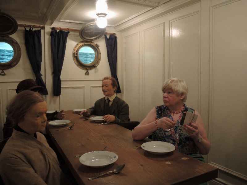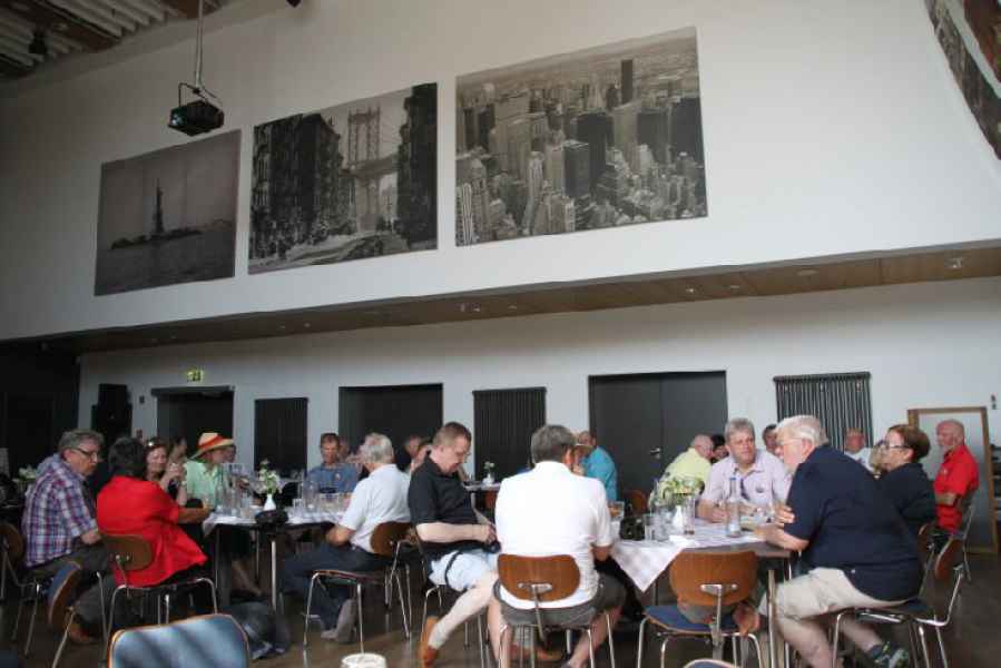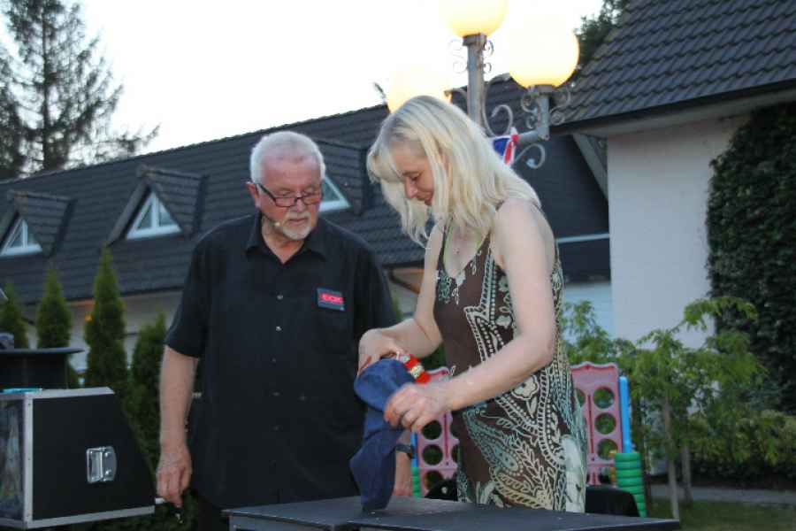 Vor der Führung durch's Erlebnismuseum, das deutsche Auswandererhaus, gab´s Krabben- und Matjesbrötchen. Dann traten wir die spannende und fast hautnah zu erlebende Zeitreise durch 300 Jahre Aus- und Einwanderung an. Als am Horizont verdächtig dunkle Wolken aufzogen, flüchteten wir aus Bremerhaven. Verfolgt von Blitz, Donner und Wind erreichten wir Hatten. Trocken! Und dann schien wieder die Sonne, so dass wir gut bewirtet auch diesen Abend draußen verbringen konnten, einen im wahrsten Sinne bezaubernden Abend: Werner hatte einen Künstler engagiert, der uns mit seinen Tricks verblüffte.
