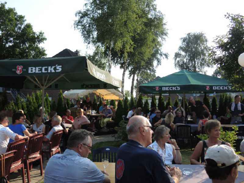 Am Abend saßen alle in gemütlicher Runde bei eisgekühlten Getränken - der Wettergott meinte es immer noch sehr gut mit uns - und genossen das Grillbuffet.