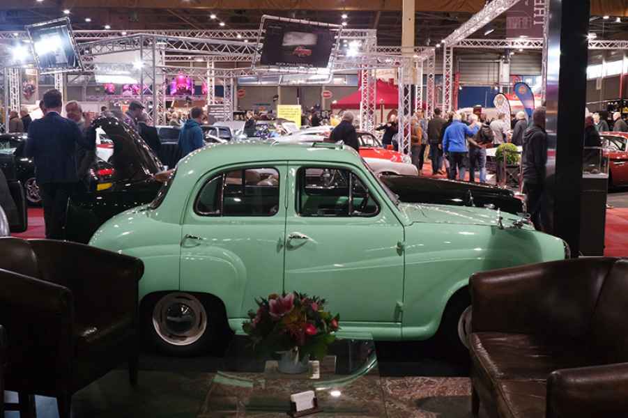 Außer dem Thementräger BMW gab es aber noch reichliche Attraktionen für den Oldtimerfreund mit Ambitionen zur Insel. Auf den 35.000QM Hallen-Fläche (inkl.Zelt-Pavillon) präsentiert sich ein breit gefächertes Angebot an 400 historischen Exponaten von Engländern, Franzosen, Italienern & Deutschen und weiterhin interessante Einzelstücke der liebevollen Markenclubs mit professionellem Auftritt, wie etwa der traditionelle Healey-Club NL mit seinem Großaufgebot knallroter Renn-Big`s.