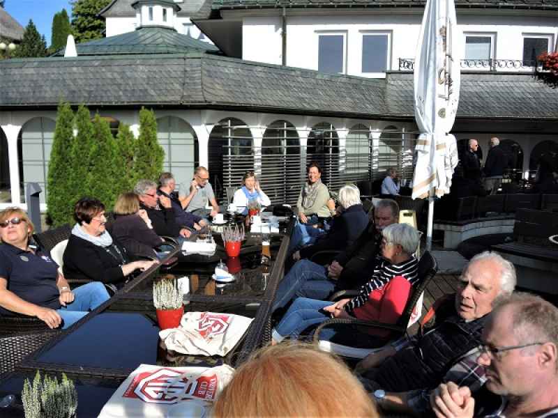 Gutgelaunt und wohlbehalten kamen die Teilnehmer im Laufe des Nachmittags im Hotel Astenkrone ein und genossen bei Kaffee, Kuchen und wunderschönem Wetter die Gespräche auf der Terrasse.