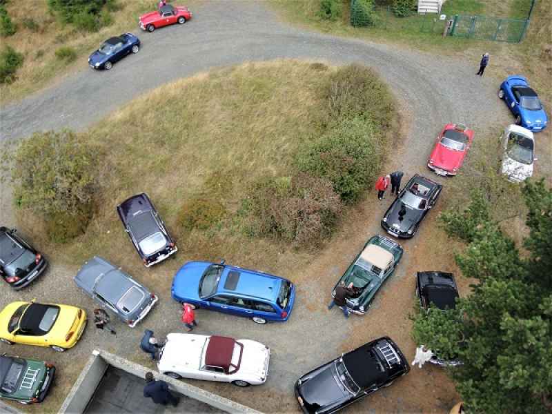 Der Sonntagmorgen begann herbstlich undurchsichtig. Nieselregen löste den Nebel ab und wieder unter dem schützenden Verdeckbesuchten wir die Galerie Klute-Waldemai mit ihren beeindruckenden Bronzeinsekten, Brunnen und Glasarbeiten. Eine Tasse guten Kaffees und ein leckeres Stück Kuchen in der Kaffeerösterei in Holthausen stärkten uns für die Heimfahrt nach einem rundum gelungenen Herbsttreffen.